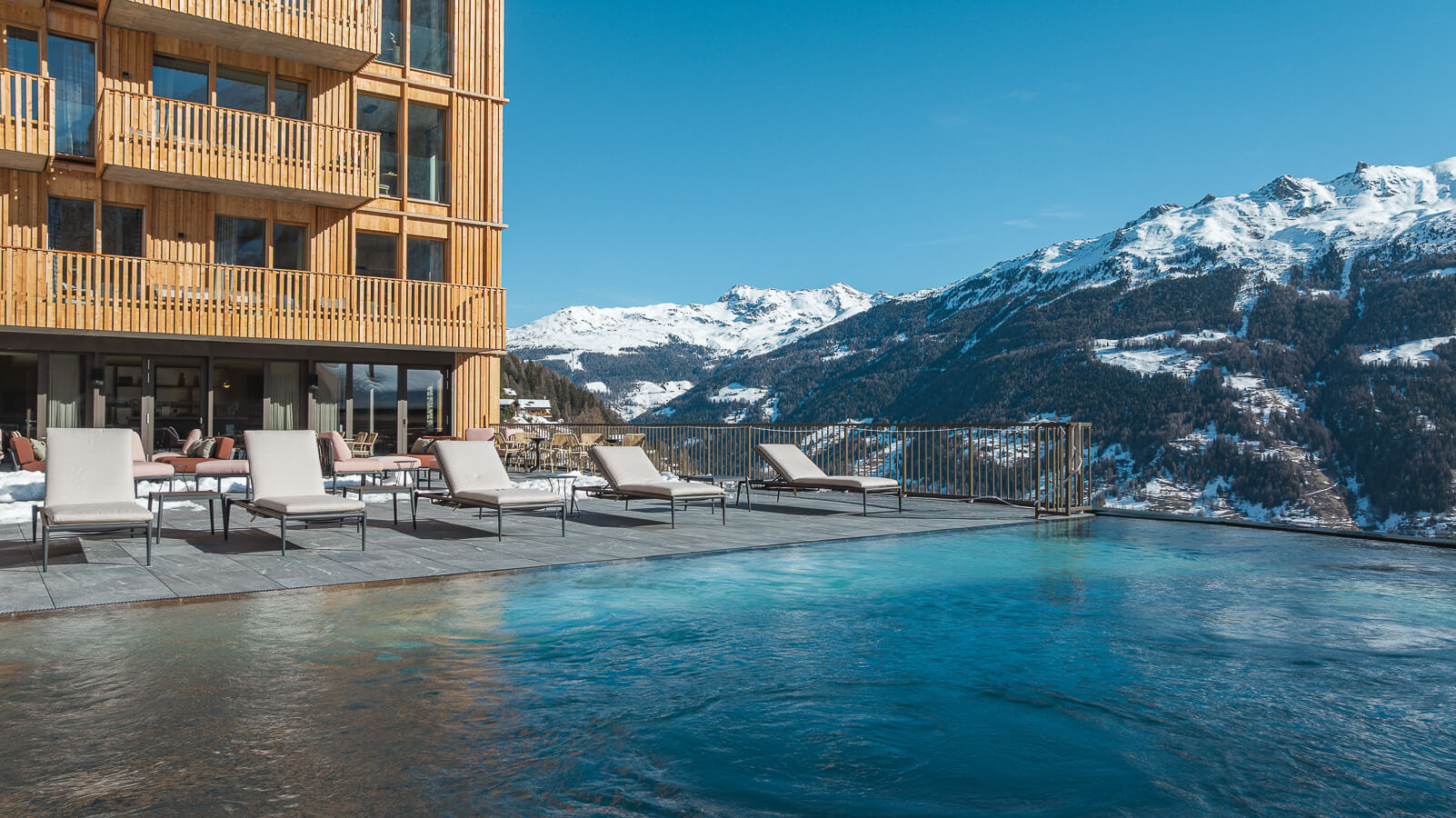 Gönnen Sie sich einen Moment purer Entspannung im Wellnessbereich der 5-Sterne- Ferienanlage Guernerés in Grimentz. Lassen Sie sich von der wohltuenden Wärme des 20 x 9 Meter großen, beheizten Innen- und Außenpools umhüllen, einer wahren Oase der Ruhe. Verlängern Sie das Erlebnis im Nassbereich zwischen Hammam, Sauna, Erlebnisduschen und Entspannungsbereich mit Liegestühlen. Im Außenbereich können Sie sich auf der Terrasse mit Blick auf die umliegenden Berggipfel erholen. Ein elegantes und intimes Ambiente, ideal, um nach einem Tag in den Bergen neue Energie zu tanken und im Herzen der Schweizer Alpen Ruhe, Ausgeglichenheit und Entspannung zu finden.