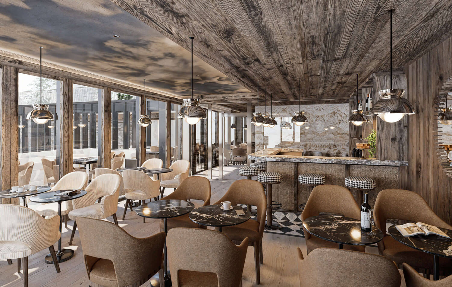 Im Herzen der 5-Sterne-Ferienanlage Guernerés in Grimentz bietet Ihnen die Lounge-Bar einen ruhigen Rahmen, um sich nach einem erlebnisreichen Sommertag zu entspannen. Machen Sie es sich auf der Terrasse oder im Innenbereich gemütlich, und genießen Sie den grandiosen Blick auf die umliegenden Berggipfel. Probieren Sie eine raffinierte Auswahl an erfrischenden Cocktails, lokalen Weinen und sommerlichen Getränken, begleitet von köstlichen Tapas zum Teilen, in einer eleganten und geselligen Atmosphäre, die der alpinen Lebensart treu bleibt.