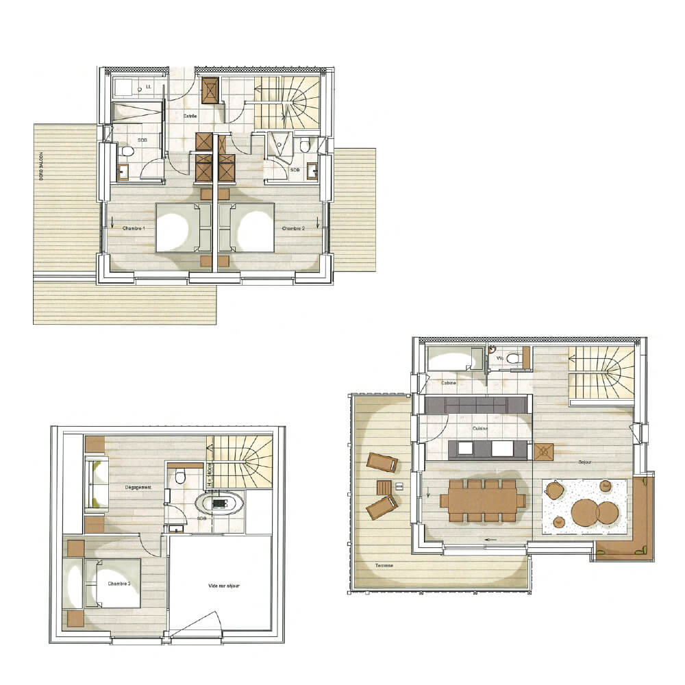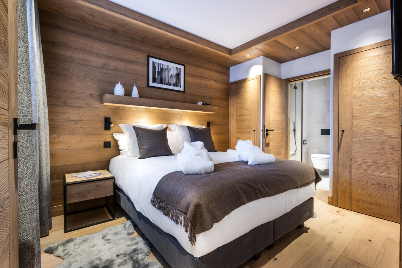 Dieses freistehende Chalet auf drei Ebenen verfügt über drei Schlafzimmer mit Doppelbett (180 × 200 cm), ein Kabinenschlafzimmer mit Etagenbett (90 × 190 cm) sowie über drei Badezimmer mit Dusche und Badewanne. Der Wohnbereich bietet eine Sitzecke mit Fernseher, eine voll ausgestattete Küche, einen Holzofen und großzügige Außenbereiche mit Panoramablick auf die umliegenden Berge von Sorebois und Nava. Das Chalet ist nach allen Himmelsrichtungen ausgerichtet, sodass Licht und Aussicht sich im Laufe des Tages ständig ändern. Zur Ausstattung gehören Haushaltsgeräte wie Waschmaschine und Trockner, Geschirrspüler, Nespresso-Kaffeemaschine, notwendige Küchenutensilien usw.