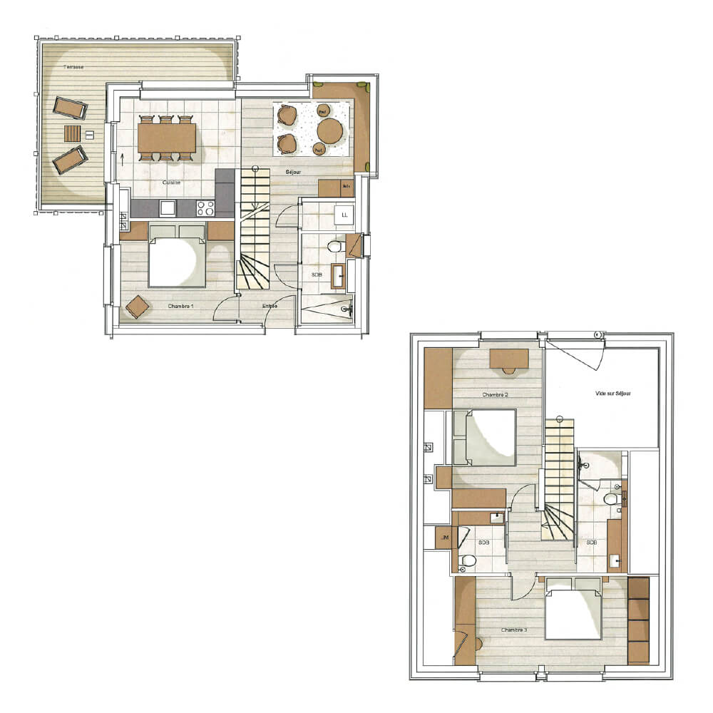 Dieses Maisonette-Chalet bietet Ihnen zwei Ebenen voller Glück für Ihren Aufenthalt in den Bergen. Entdecken Sie den Grundriss, um die Innenaufteilung zu verstehen und die großzügigen Wohnbereiche zu genießen.