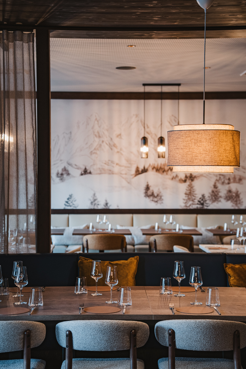 In einer gemütlichen und urigen Atmosphäre lädt Sie das Restaurant Nava im ersten Stock der 5-Sterne-Ferienanlage Guernerés ein, seine außergewöhnliche Terrasse mit spektakulärem Blick auf die Berge und die majestätischen Pointes de Nava zu genießen. Die holzgetäfelte alpine Atmosphäre bietet einen ruhigen Rückzugsort für den kulinarischen Genuss. Hier schafft die Liebe zum Detail ein ideales Ambiente, in dem Komfort, sommerliche Aromen und Geselligkeit zu einem unvergesslichen kulinarischen Erlebnis in den Bergen verschmelzen.